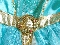 de jurk heeft een hologrambroche: als je de broche beweegt zie je 2 verschillende afbeeldingen van Merida!