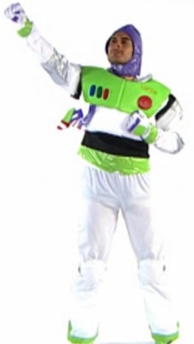 broek met schoenflappen, hes met borstkap, afneembare "raketvleugels", paarse hoofdkap